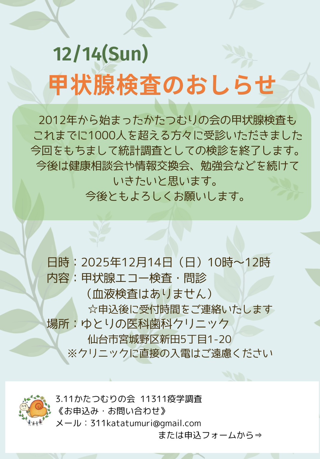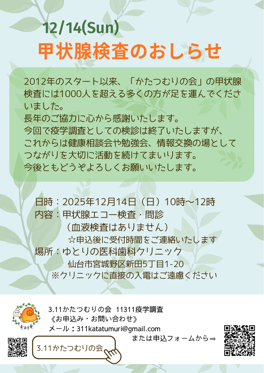 甲状腺検診や学習会などの取り組みを、このホームページからお知らせします。